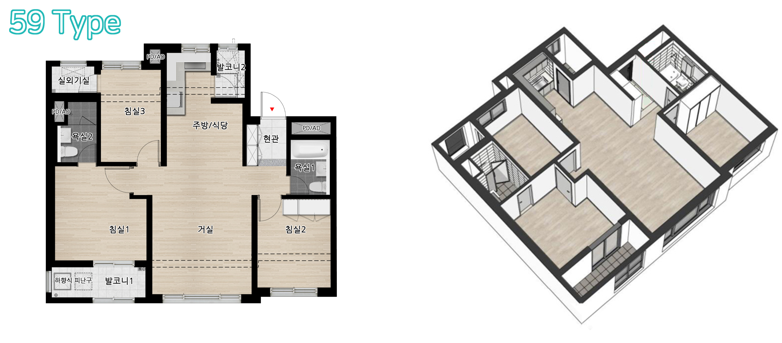 🚩전용면적(㎡) : 36.8169[11평] ~ 59.9888[18평]