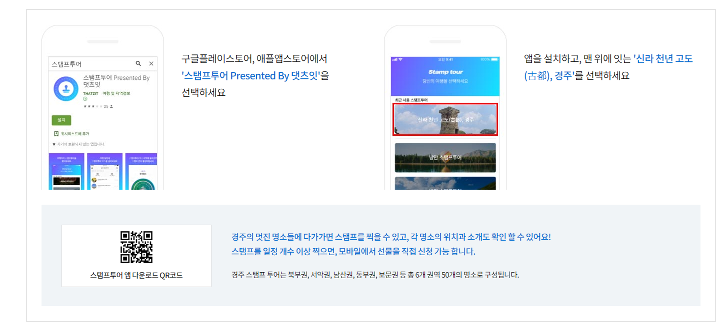 경주의 명소를 방문하면서 스탬프를 찍을 수 있고, 위치와 소개도 확인이 가능합니다.