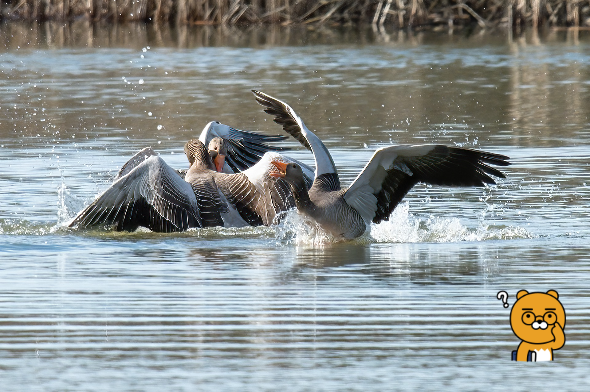 맥도생태공원에는 오리류, 기러기류가 많이 오는 지역으로 철새의 먹이와 휴식을 제공할 수 있는 무논이 조성되어있다. - 갈대습지